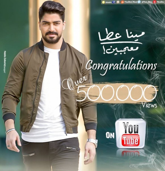 مينا عطا يحتفل مع جمهوره بوصول كليب"معجبين والله"لنصف مليون مشاهده