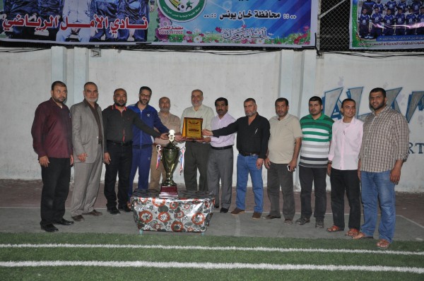 وفي نهاية اللقاء قدمت اللجنة الرياضية درع تكريمي لإدارة نادي الأمل.