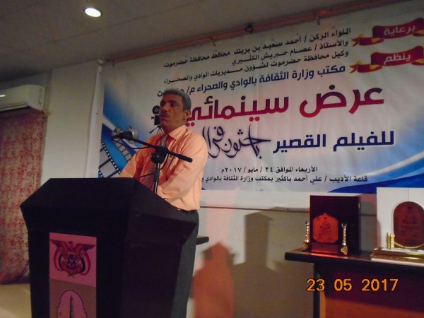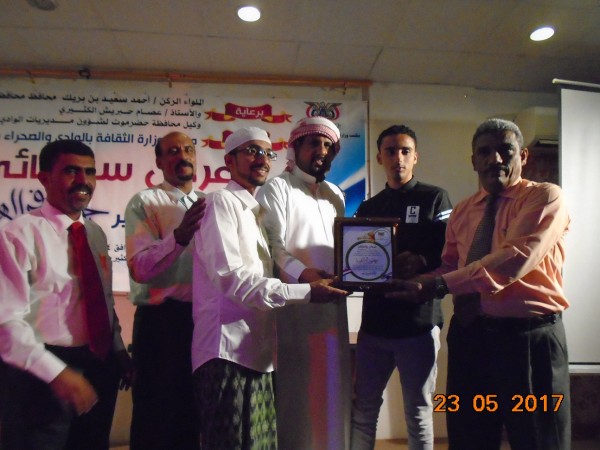 برعاية محافظ محافظة حضرموت اللواء أحمد سعيد بن بريك ووكيل محافظة حضرموت لشئون مديريات الوادي والصحراء الأستاذ عصام حبريش الكثيري نظم مكتب وزارة الثقافة بوادي حضرموت والصحراء صباح يوم الأربعاء الرابع والعشرين من مايو الجاري بقاعة الأديب علي أحمد باكثير بمكتب وزارة الثقافة بوادي حضرموت والصحراء عرض سينمائي للفلم القصير " باحثون في الهوية " الحائز على جائزة الإبداع في التصوير السينمائي في الأفلام التسجيلية بمهرجان الإسكندرية للأفلام القصيرة في دورته الثالثة للفترة من 19-24 أبريل المنصرم , وفي الحفل الذي أقيم بالمناسبة وبدأ بآية من الذكر الحكيم تلاوة الشاب حسين إبراهيم الحبشي نقل مستشار محافظ حضرموت لشئون الشباب الأستاذ رياض بن صلاح الجهوري تحيات المحافظ الذي كلفه بحضور مراسم العرض والتكريم وتحيات وكيل ألمحافظه لشئون الوادي والصحراء معرباً عن سعادته بما حققوه الشباب أعضاء فريق فلم باحثون في الهوية وتألقهم في المحافل الدولية معتبراً ذلك فخراً لكل أبناء حضرموت الذي يتلألاء في سماها كل يوم نجم ’ لافتاً الى أن الشباب هم أمل حضرموت ومستقبلها وبرغم الظروف فهم أمل الغد المشرق , مشيراً الى انه يعتبر خادماً لأولئك الشباب ويفتخر بذلك وسيقف الى جانبهم ونقل همومهم ومعاناتهم ومساعدتهم لكي تبنى حضرموت , حضرموت الأصالة والحضارة ’ مؤكداً على الاهتمام بالشباب كونهم أساس بناء الأوطان ويجب ان تحترم أفكارهم وتجد من يتبناها ’ مؤكداً ان مشاركته مع الشباب أعطت له ميزة خاصة وهي عشقه للسينما, شاكراً كل الداعمين وكل من ساند الشباب خلال رحلتهم الى الإسكندرية وعلى رأسهم الأب الروحي للشباب الشيخ عبدالله أحمد بقشان ومؤسسة مبادرة الشباب ومحافظ البنك المركزي وشركة الأهرام للطاقة والصندوق الخيري للطلاب المتفوقين , من جانبه أشاد مدير عام مكتب وزارة الثقافة بوادي حضرموت والصحراء الأستاذ أحمد بن دويس بهذا العمل الرائع للشباب وماحققه فلم باحثون في الهوية من إنجاز في عالم السينما أو الفن السابع مشيراً الى ان هؤلاء الشباب قد طرقوا موضوع في غاية الأهمية وهو الهوية الحضرمية من خلال جزئيات الفلم كفن العمارة والجانب الفكري والموروث الثقافي وتسليط الضوء على الأديب علي أحمد باكثير وكذا الجانب الديني للحضارم المتمثل في الوسطية والاعتدال , بدوره تحدث المهندس أحمد جعفر الحبشي كاتب سيناريو الفلم عن مشاركتهم وحصول الفلم على الجائزة منوهاً الى فكرة الفلم التي أتت بمبادرة أحد الأعضاء لتقديم عمل مشرف لحضرموت وكان الهم هو كيف نعيد الصورة الحضرمية في قالب درامي يصل الى الناس فكان هذا الفلم " باحثون في الهوية " جسد هوية الانسان الحضرمي , مشيراً الى أن فترة إعداده وتصويره استغرقت أكثر من عام وكانت المشاركة في مهرجان الإسكندرية رائعة جداً وقد أشادوا بفكرة الفلم وتصويره الكثير من المخرجين العرب المشاركين في المهرجان ’ لافتاً ان الفلم بدأ بميزانية صفر وبجهود ذاتية لأعضاء الفريق وكان الهدف هو توجيه رسالة والوصول للعالمية ’ مشيراً الى ان مشاهد الفلم صورت في مدينة سيؤن نظراً لارتباط أعضاء الفريق بالدراسة ولكننا نتمنى ان تعمم الفكرة في باقي مدن حضرموت ليصنع منها فلم متكامل يجسد فيه الهوية الحضرمية منوهاً الى أن الفلم تم عرضه في ثانوية الصبان وثانوية سيؤن النموذجية للبنين وسيعرض غداً في ثانوية النهضة بسيؤن ومستقبلاً سيتم عرضه في عدد من مدن وادي حضرموت , بعد ذلك تم عرض الفلم وقدم الشباب المشاركين في أنتاج الفلم فكرة الإنتاج وتجربتهم أثناء التسجيل وأيضا المشاركة في المهرجان , ومن ثم قدم الحاضرون مداخلاتهم وملاحظاتهم على الفلم والتي تهدف الى تطويره معبرين للشباب عن سعادتهم وإعجابهم بهذا الفلم وماحققه من أنجاز , في ختام الحفل تم تكريم الشيخ عبدالله أحمد بقشان والأستاذ رياض بن صلاح الجهوري مستشار محافظ حضرموت لشئون الشباب والأستاذ منصر صالح القعيطي محافظ البنك المركزي ومؤسسة مبادرة الشباب والدكتور 