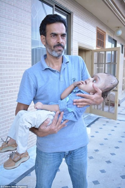 وكان ابتسام فيصل البالغ من العمر 20 شهراً يعاني من استسقاء في الرأس بعد الولادة، مما تسبب بتضخم رأسه إلى 73 سم. ونظراً لحجم رأسه الضخم، لم يكن قادراً على النوم مغمض العينين أو الحركة بحرية، وكان مضطراً للبقاء في سريره طوال الوقت، بحسب صحيفة ديلي ميل البريطانية.