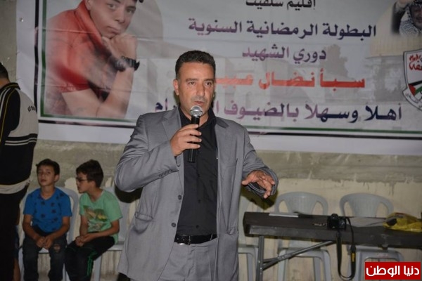 بدوره أاشاد عبد الستار عواد أمين سر حركة فتح إقليم سلفيت بمناقب الشهيد سبأ عبيد وأكد على مواصلة درب النضال من أجل الحرية والاستقلال وفاءً لدماء الشهداء وعلى رأسهم الشهيد القائد الرمز ياسر عرفات، مشدداً على أن حركة فتح تحمل رسالة نبيلة لدعم تطلعات الشباب، وتقدم كافة الامكانيات لهم، ومشيراً إلى ضرورة إنجاح الفعالية على الوجه الأكمل والخروج عن المألوف والابتكار لإنجاح الدوري الذي يعتبر عرفاً في المحافظة وخصوصاً في شهر رمضان المبارك، كما أكد على ضرورة وقوف المجتمع المحلي إلى جانب الرياضيين.