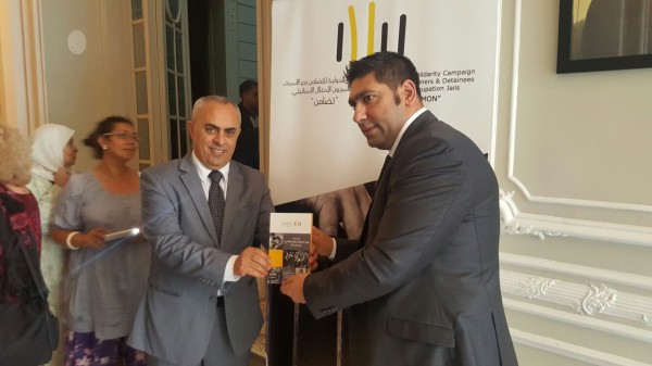 وقد تحدت السيد احمد ابو النصر ممثل تضامن في مجلس حقوق الإنسان شارحاً من خلال المعرض معاناة اسرى فلسطين وظروف حياتهم داخل المعتقلات و عدالة قضيتهم الإنسانية و حقهم بالحرية، كم سلم ابو النصر تقرير حال الأسرى خلال 2016 للسفير.