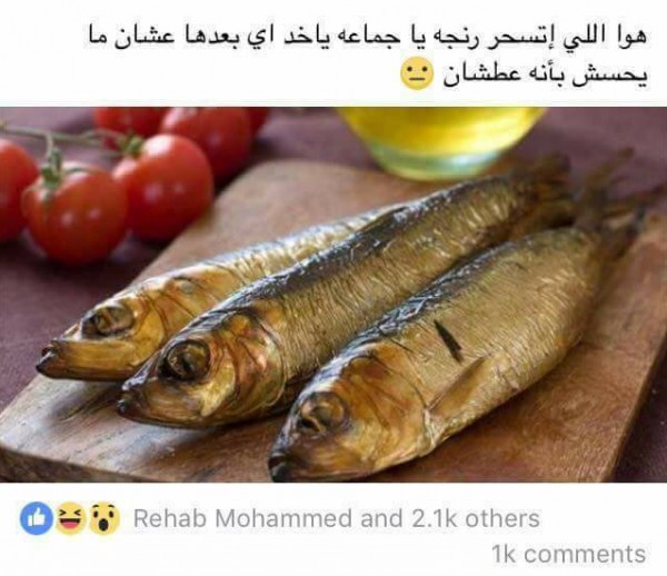 سخر مستخدمو موقع التواصل الاجتماعي "فيس بوك" من شاب تناول رنجة بوجبة السحور ويتساءل عما يجب أن يفعله حتى لا يشعر بالعطش.