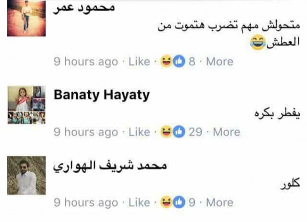 انهالت التعليقات الساخرة على الشاب والمتعجبة من إقدامه على تلك الخطوة فمنهم من تخيل شكله خلال عطشه نهارا ومنهم من أخبره أنه بعد أن يتناول الخيار والبطيخ ويشرب الكثير من المياه لا مفر من شعوره بالعطش، وغيرها من التعليقات الطريفة.