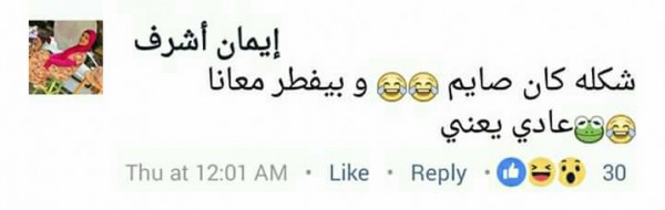بينما قال أحمد:" عصير سحالي"، وأضافت إيمان:"شكله كان صايم وبيفطر معانا عادي يعني".