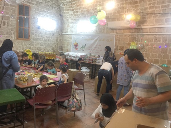 وقد تمت ورشة إعداد الطّرود الغذائية ببسمة طفوليّة حيث قامت الامهات بالتعاون مع اطفالها بإعداد الطرد وتزيينه بمناسبة حلول شهر رمضان المبارك.