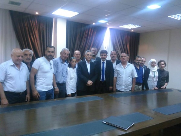 التقى السفير أنور عبد الهادي مدير الدائرة السياسية لمنظمة التحرير الفلسطينية ووزير المصالحة السوري د . علي حيدر في مقر وزارة المصالحة بدمشق مع اللجنة الشعبية الفلسطينية المقترحة لمخيم اليرموك .
