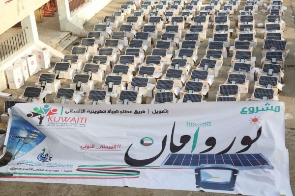 دشنت مؤسسة اليتامى الخيرية التنموية عضو إئتلاف الإغاثة الإنسانية ، مشروع (نور وأمان) المرحلة الأولى الذي يهدف لإنارة شوارع تعز بالخلايا الشمسية ، بدعم من فريق عطاء المراءة الكويتية الانساني.