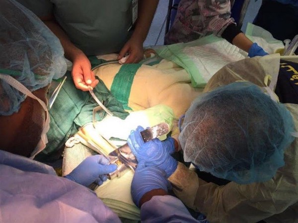 وأجريت عملية جراحية للطفلة استغرقت ساعتين حتى تمكن الفريق الطبي بالتعاون مع رجال الدفاع المدني من إخراج يد الرضيعة.