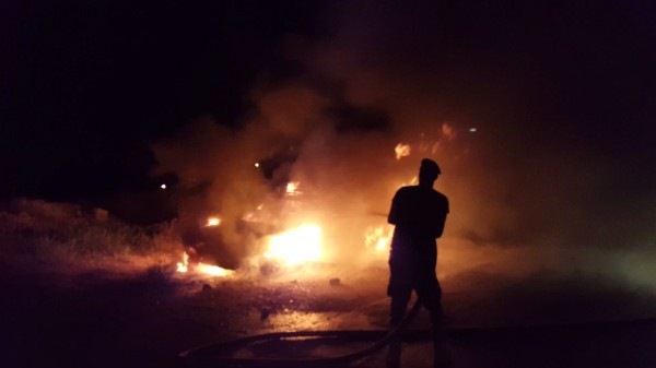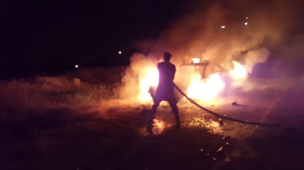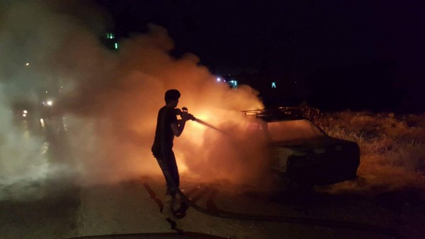 اليوم الأحد 11/6/2017 ، النيران التي نشبت بمركبة في قرية بيت عنان شمال غرب القدس .