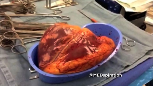 عرض برنامج "الأطباء" الأمريكي على قناة "سي بي اس" الفيديو، لقلب شخص أدمن الكوكايين فترة طويلة وظهر قلب حجمه أكبر ثلاث مرات عن القلب العادي، ينبض بشكل غير منتظم خارج الجسم لمدة 25 دقيقة.