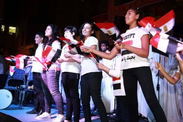 بدأت الاحتفالية بالسلام الوطنى وغنوة لا للإرهاب بمشاركة فرقة ورشة أطفال المسرح القومى للاطفال بأعلام مصر فى دعوة إلى نبذ العنف والتطرف ليتفاعل الأطفال مع الكبار لينشدوا معاً السلام الوطني وكأن المبانى التاريخية والاثرية بشارع المعز تشهد على حماس الجماهير مع بلادى بلادى لترسم صورة حقيقية لعظمة مصر بين الماضى والحاضر والمستقبل .