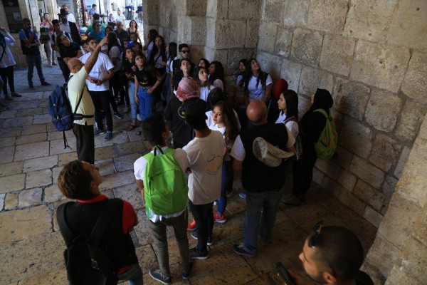 وأشرف على الجولة الاستاذ خليل صبري الذي قدم شرحا تفصيليا عن الحقبات التاريخية المختلفة التي مرت على مدينة القدس، وابتدات الجولة من باب الخليل من الاسوار الجنوبية للمدينة مرورا بالحي الارمني وحارة النصارة وحارة اليهود، وانتهت في الحي الاسلامي.