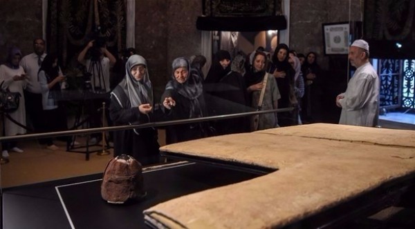 تقاطر عدد كبير من الرجال والنساء وانتظروا في صفين طويلين امتدا خارج مسجد في اسطنبول، لمشاهدة ما يُعتقد أنها بردة النبي محمد، أي العباءة التي كان يرتديها قبل أن يهديها لأحد تابعيه.