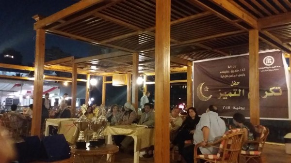 عقب حفل الافطار بدأت فعاليات التكريم بالسلام الجمهورى لجمهورية مصر العربية وانشدت فرقة كورال طيبه والحاضرون مع السلام الجمهورى اغنية بلادى بلادى لك حبى وفؤادى.