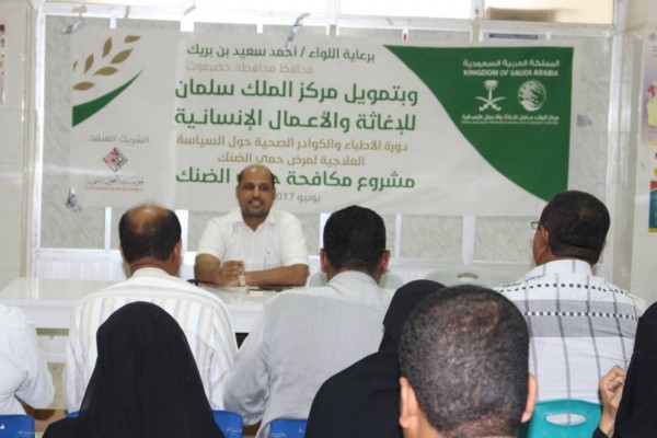 برعاية اللواء أحمد سعيد بن بريك محافظ حضرموت وبتمويل من مركز الملك سلمان للإغاثة والأعمال الانسانية وبتنفيذ من قبل الشريك المنفذ مؤسسة العون للتنمية اختتمت اليوم بمستشفى الشحر العام الدورة التدريبية للأطباء حول السياسة العلاجية لمرض حمى الضنك والتي يشارك فيها عدد 30طبيب وطبيبة من المديريات المستهدفة من قبل مشروع مكافحة حمى الضنك والمتمثلة في مديريات ( الشحر وغيل باوزير والديس الشرقية والريدة وقصيعر).