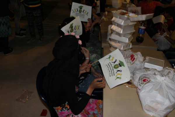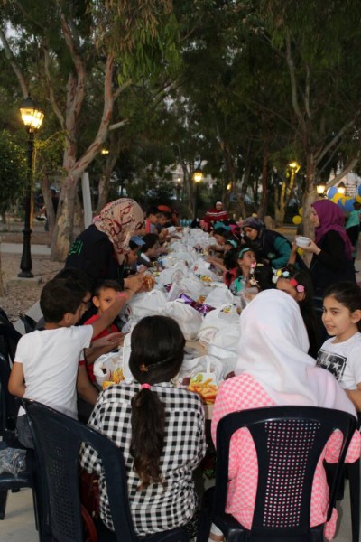 افتتح النشاط بترحيب من قبل طلاب القسم بالأطفال، ووزعوا لكل منهم فانوس رمضان، ثم قام الأطفال بمساعدة الطلاب بممارسة الألعاب الترفيهية لتسليتهم، وتلا ذلك فقرة غنائية ترفيهية قدمها الأستاذ ناصر الأسير ما أضاف جوا من المرح لدى الأطفال، وبعد الإفطار تم توزيع هدايا تذكارية للأطفال وأعلام الاختصاص وسط جو من الفرح. ثم قدم أطفال دار الرعاية هدية تذكارية لرئيس القسم.