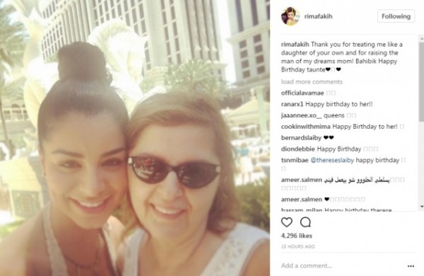وعلّقت عليها، وكتبت: "شكراً لأنك عاملتني كابنتك المدلّلة، وعلى تربيتك رجل أحلامي يا أمي. أحبك. عيد ميلاد سعيد يا "تانت".