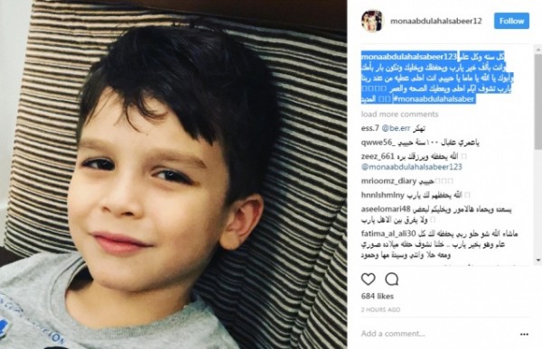 وكانت السابر عايدت ابنها أيضاً بصورة على "انستغرام"، وكتبت: "كل سنة وكل عام وانت بألف خير يارب ويحفظك ويخليك وتكون بار بأمك وأبوك يا الله يا ماما يا حبيبي انت احلى عطية من عند ربنا. يا رب تشوف ايّام احلى ويعطيك الصحة والعمر المديد".