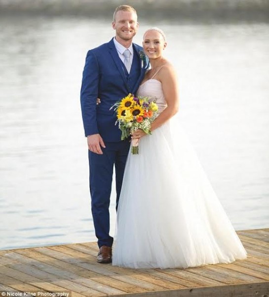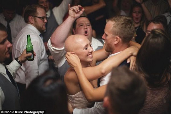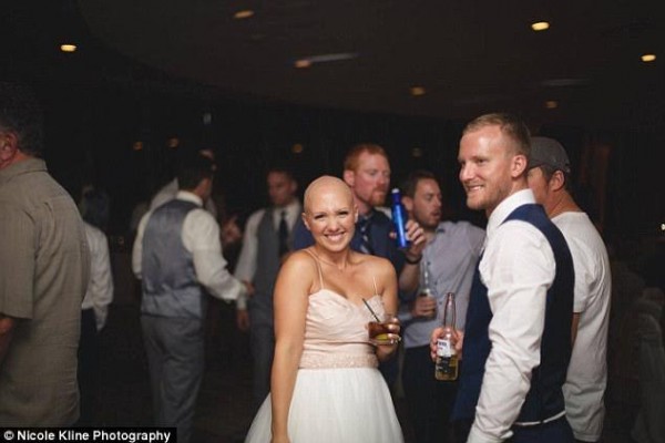 وجربت العروس عدة علاجات خلال فترة المراهقة لوقف تساقط الشعر، ولكن عندما فشلت المحاولات، وبعد أن تم تشخيص حالتها بأنها مصابة بداء “الثعلبة” كان أول رد فعل لها هو شراء باروكة والتي ارتدتها لحضور حفلة موسيقية.