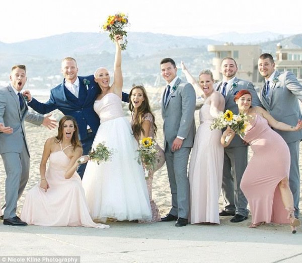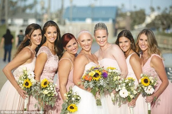 وتباهت عروس بفقدان شعرها بسبب داء "الثعلبة" بالكشف عن رأسها الصلعاء في يوم زفافها، واستمتعت بالوقوف بالخارج وسط حشد من الناس وهي ترتدي ملابس رائعة.