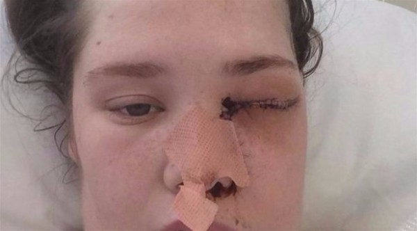وقد خضعت جونز لعملية جراحية عاجلة استغرقت 36 ساعة، تم خلالها إزالة عينها اليسرى والورم الذي انتشر في الجهة اليسرى من وجهها.