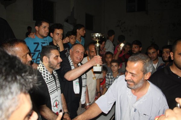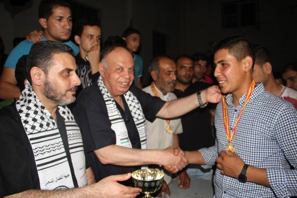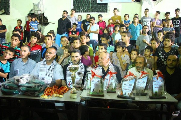 وقامت قيادة الجبهة وممثلي لجان الاحياء والوجهاء والمخاتير في منطقة شرق غزة بتسليم الكؤوس والجوائز على المركز الأول والثاني بالإضافة الى توزيع الميداليات الذهبية والفضية، وتوزيع الدروع والهدايا التذكارية للقائمين على تنظيم البطولة والحكام.