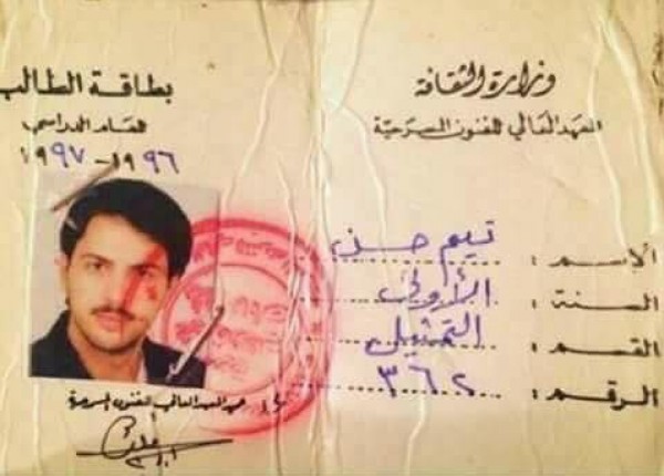 نشرت إحدى الصفحات عبر موقع فيس بوك بطاقة قديمة للنجم السوري تيم حسن خلال دراسته في المعهد العالي للفنون المسرحية.