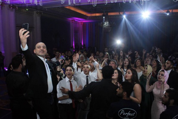 وقد اختار الطلاب ان يحتفلوا بتخرجهم فى ايام عيد الفطر المبارك ووصل دياب الى مقر الحفل صاعدا الى مسرح الحفل على اغنيه غمازات وسط جواء من التصفيق وصيحات الطلاب.