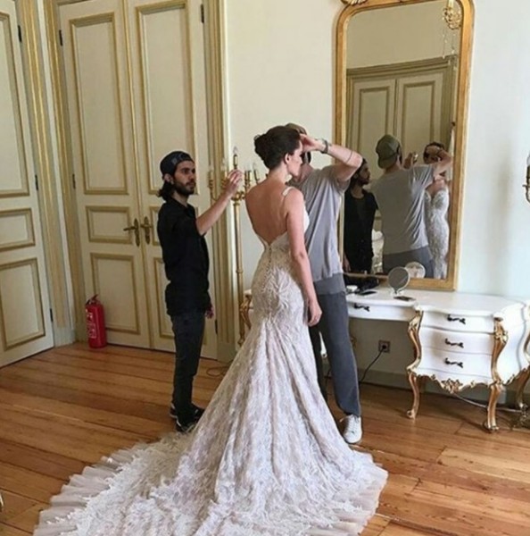 وأشارت وسائل إعلام تركية إلى أن قماش فستان الزفاف مستورد من باريس وأن 15 خياطاً واظبوا على العمل من أجل الانتهاء من الفستان قبل حلول موعد الزفاف.