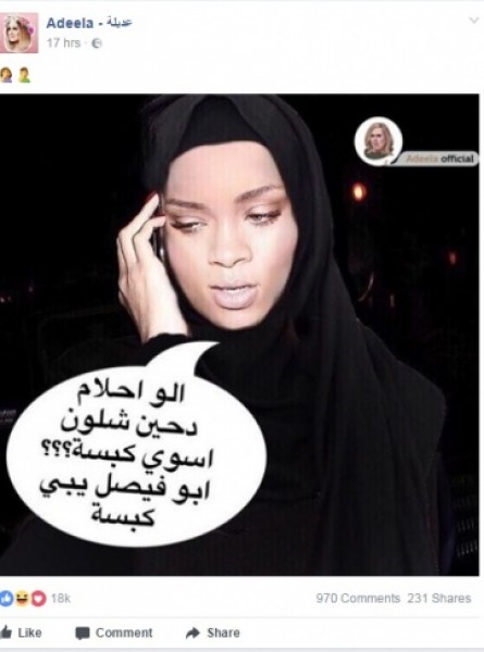 ومن أبرز المعلقين، صفحة "عديلة" على "فايسبوك"، التي نشرت صورة لريهانا بالحجاب.