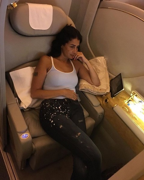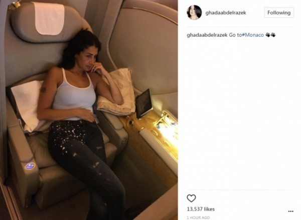 وشاركت النجمة المصرية جمهورها صورة لها في الطائرة خلال توجهها الى امارة موناكو من جزر المالديف.
