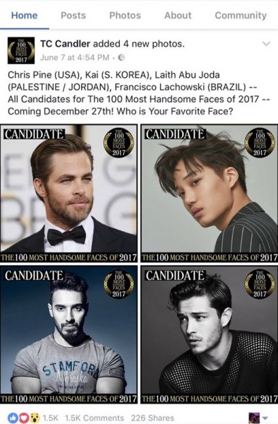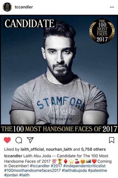 أصدر موقع المراجعات الترفيهي TC Candler لائحتهم السنوية الشهيرة، لأجمل وأوسم ١٠٠ وجه في العالم، وقد تم ترشيح المطرب الفلسطيني ليث أبو جودة، ضمن أوسم 100 وجه على مستوى العالم.