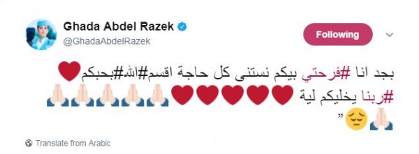 ووجهت غادة رسالة إلى جمهورها عبر تويتر قائلة : «بجد أنا فرحتى بيكم نستنى كل حاجة اقسم بالله بحبكم، ربنا يخليكم ليّا».
