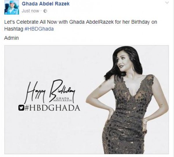 احتفلت الفنانة غادة عبد الرازق، مساء أمس، بعيد ميلادها عبر حسابيها على موقعى التواصل الاجتماعى فيس بوك وتويتر.