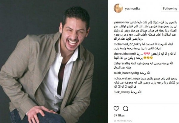 ياسمين جمال لـ"عمرو سمير":"ربنا قبل دعوتك وتوفاك"