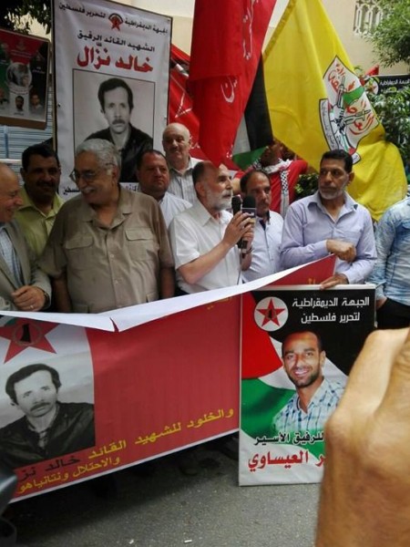 وطالب الجمعة الاحزاب والقوى العربية بدعم صمود الشعب الفلسطينية وانتفاضته ومقاومته ، داعيا الى تعزيز الوحدة الوطنية ضمن اطار منظمة التحرير الفلسطينية،واضاف ليس غريباً أن يشن الاحتلال الإسرائيلي هذه الهجمة الشرسة على شهداء شعبنا وأسراه ومقاومته الباسلة، فهو يبقى احتلالاً ويتسم بالعنصرية، مشيرا إن الشهيد خالد نزال عضو اللجنة المركزية للجبهة الديمقراطية صاحب سجل ناصع ومشرف، فهو مناضل من أجل الحرية والواجب الوطني وليس إرهابياً كما يدعي الاحتلال، بل قاد مقاومة مشروعة ضد الاحتلال الإسرائيلي، والتي كفلتها كافة الشرائع والمواثيق الدولية للشعوب الواقعة تحت الاحتلال.
