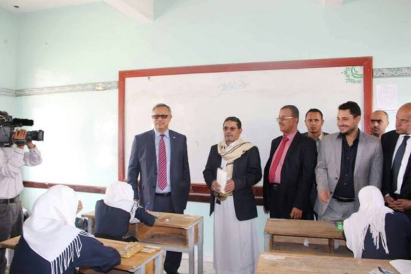 ورئيس الوزراء ووزير التربية والتعليم ومعهما أمين عام المجلس المحلي بأمانة العاصمة أمين جمعان ونائب وزير التربية رئيس اللجنة العليا للاختبارات الدكتور عبدالله الحامدي ووكلاء وزارة التربية وعدد من وكلاء أمانة العاصمة سير الامتحانات بمدرستي أروى والمعتصم .
