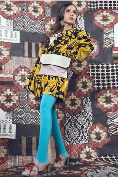 وهو فستان جمع بين اللونين الأبيض والأزرق على شكل مربعات إلى جانب بعضها البعض، وبسبب شكل وتصميم الفستان، شبَّهه الجمهور بـ"سيراميك الحمامات"، والبلاط الذي يوضع في حمامات السباحة.
