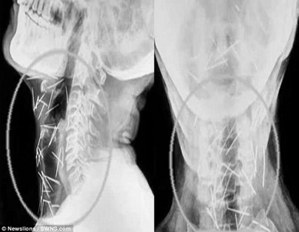 واضطر باديرلال مينا (56 عاماً) لزيارة 6 مستشفيات والخضوع لثلاث عمليات جراحية، لإزالة الدبابيس من ذراعيه وقدميه وعنقه، وحتى الآن تمت إزالة 91 دبوساً، البعض منها كان صدئاً للغاية، بعد أن تركت داخل جسده منذ عدة أشهر، بحسب صحيفة ديلي ميل البريطانية.