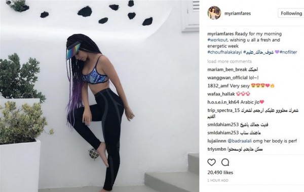 نشرت النجمة ميريام فارس صورا جديدة اليوم الإثنين عبر حسابها على موقع الصور والفيديوهات الشهير "إنستجرام" ظهرت خلالها بملابس رياضية جريئة، وعلقت عليها قائلة: "بستعد لعملى الصباحى أتمنى لكم أسبوعا مليئا بالنشاط والحيوية".