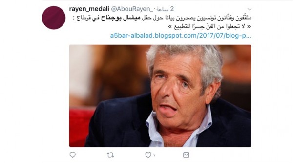ودفع هذا التصرف، «التوانسة» إلى الانقسام ما بين مطالبين بمنع استضافته في مهرجان قرطاج لأنه أصبح من المؤيدين للتطبيع في تونس، في حين رأى بعضهم أنه يعلن بذلك عداءه للشعب الفلسطيني وليس التونسي.