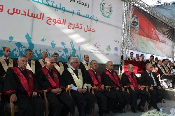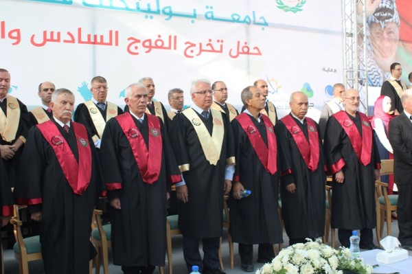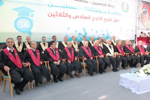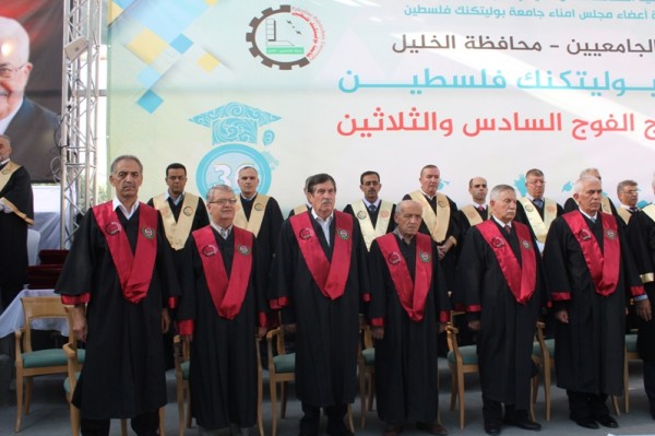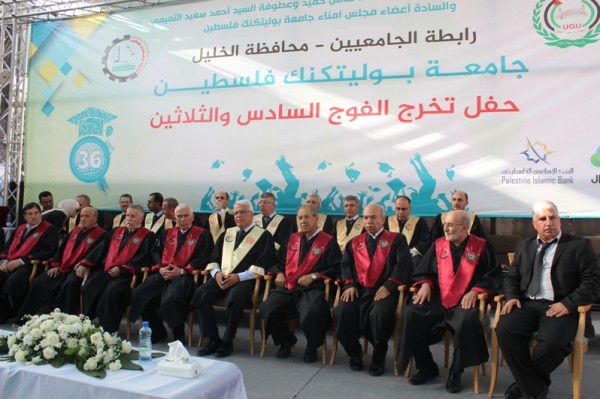 احتفلت جامعة بوليتكنك فلسطين بالخليل بتخريج الفوج السادس والثلاثين من طلبة الماجستير والبكالوريوس للعام الأكاديمي 2016/2017، بحضور رئيس مجلس رابطة الجامعيين "رئيس مجلس أمناء جامعة بوليتكنك فلسطين" الأستاذ أحمد سعيد بيوض التميمي، وأعضاء مجلس رابطة الجامعيين، والأستاذ كامل حميد ممثل سيادة الرئيس محمود عباس ومحافظ محافظة الخليل، ورئيس الجامعة الأستاذ الدكتور عماد الخطيب، ونوابه ورؤساء الجامعات، ومدراء التربية والتعليم، وعمداء الكليات وأعضاء الهيئتين الأكاديمية والإدارية، وحشد كبير من رؤساء وممثلي المؤسسات الحكومية والأهلية والمجتمعية الوطنية ورجال العشائر في المحافظة إضافة إلى جمع غفير من أولياء أمور الخريجين.