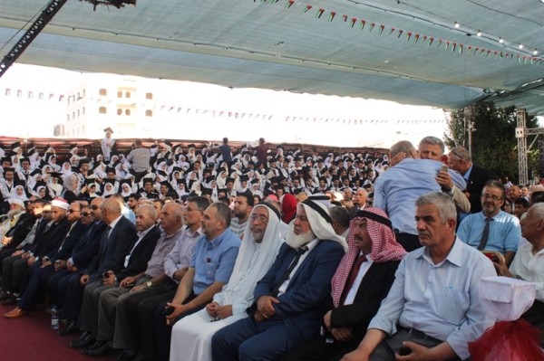 وفي بداية العرس الوطني الفلسطيني ألقى الأستاذ احمد سعيد التميمي رئيس مجلس أمناء جامعة بوليتكنك فلسطين/ رئيس رابطة الجامعيين كلمة مُرحباً فيها بالحضور بتخريج كوكبة من الشباب والشابات الفلسطينيات مُستعرضاً مسيرة الجامعة وتطورها في مختلف المجالات والميادين والإضافات النوعية والتوسعية المهمة في مباني الجامعة ومرافقها وتخصصاتها والتي تؤهل الجامعة لإضافة تخصصات جديدة واستيعاب أعداد أكبر من الطلبة الجدد، مُشيراً إلى احتفال رابطة الجامعيين وجامعة بوليتكنك فلسطين مؤخراً، بوضع حجر الأساس لمشروع مباني مُجمّع العِزَّة الطِّبي على الأرض التي خصصتها رابطة الجامعيين لهذا المشروع بمساحة 15 دونماً في وسط مدينة الخليل في منطقة نمرة، وذلك دعماً وتمكيناً للأهداف الوطنية اتجاه القطاع الصحي والطبي في الجنوب الفلسطيني، حيث تداعى الخيّرون في محافظة خليل الرحمن وعلى رأسهم أبناء المرحوم عزات أبو منشار وأصدقاؤهم لدعم هذا المشروع الوطني الذي سيقام على مساحة سطحية تتجاوز ستة آلاف متراً مربعاً وبمجموع مساحات بناء تزيد عن 35 ألف متراً مربعاً مع كل الخدمات من مواقف وحدائق مع تجهيزات متخصصة ومتطورة ضمن الشروط والمعايير العالمية. مؤكداً بانّ محافظة الخليل بأمس الحاجة لمثل هذه المشاريع الحيوية الطبيّة وعلى أهمية دعم هذه المشاريع الوطنية من قبل كافة مؤسسات المجتمع المحلي.