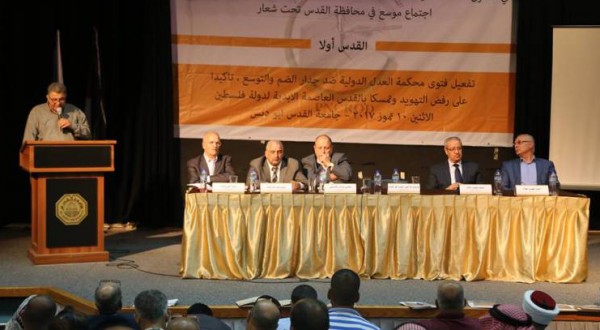 استضافت جامعة القدس، اليوم الإثنين، الاجتماع الموسع لفعاليات محافظة القدس بعنوان “القدس أولاً”، بدعوة من اللجنة الوطنية لسجل أضرار الجدار، لمناسبة مرور 13 عاماً على صدور فتوى محكمة العدل الدولية في لاهاي ضد جدار الضم والتوسع، واستكمالاً لما تحقق طوال السنوات التسع الماضية على بدء عملية التسجيل.