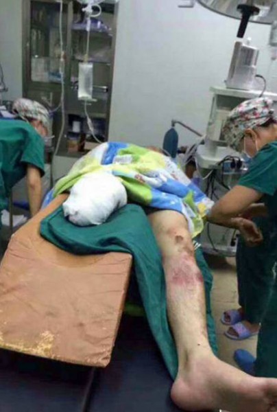 فقد رجل صيني يبلغ من العمر 29 عاما ساقه اليمنى عندما كان يحاول إنقاذ امرأة صماء تعبر خط سكة حديد.