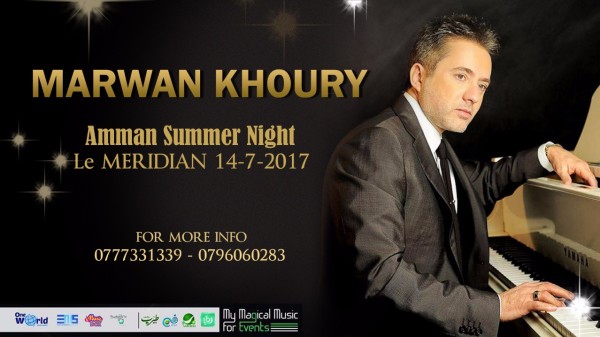 يلتقي الفنان الشامل مروان خوري الجمهور الاردني بحفل فنّي كبير في فندق Le Meridian عمّان يوم الجمعة الموافق في 14 تموز/يوليو الحالي.
