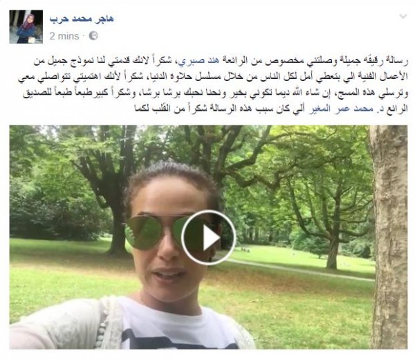 رسالة مؤثرة من هند صبري للزميلة الإعلامية "هاجر حرب"