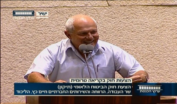 وزير الرفاه الاجتماعي حاييم كاتس وجه كلامه للنائب اسامه سعدي قائلا: ما من شك ان الحديث يدور عن قانون هام وأنا اعترف هنا امام الهيئة العامة أنك نجحت في اقناعي واقناع الحكومة بدعم هذا القانون.
