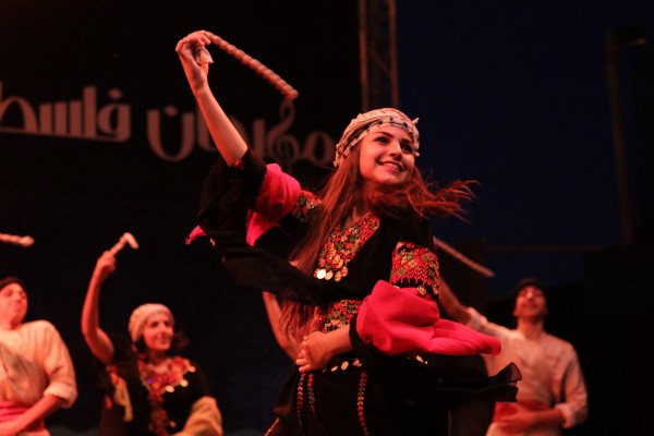 فوق خشبة مهرجان فلسطين الدولي في دورته الـ18 مساء السبت، حلّق عشرات الراقصين فرقة الفنون الشعبية الفلسطينية في لوحتهم الفنية تحت عنوان "للحرية نرقص" للتعبير عن الهوية الثقافية الفلسطينية.